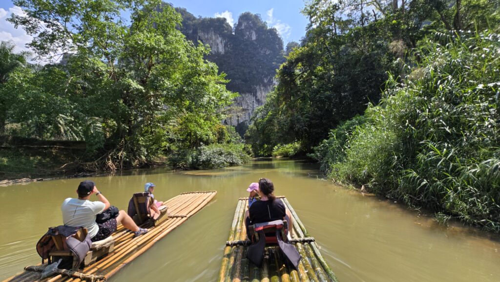 One-day trip in Khao Sok: Bamboo rafting, elephant bathing, and hot springs.
